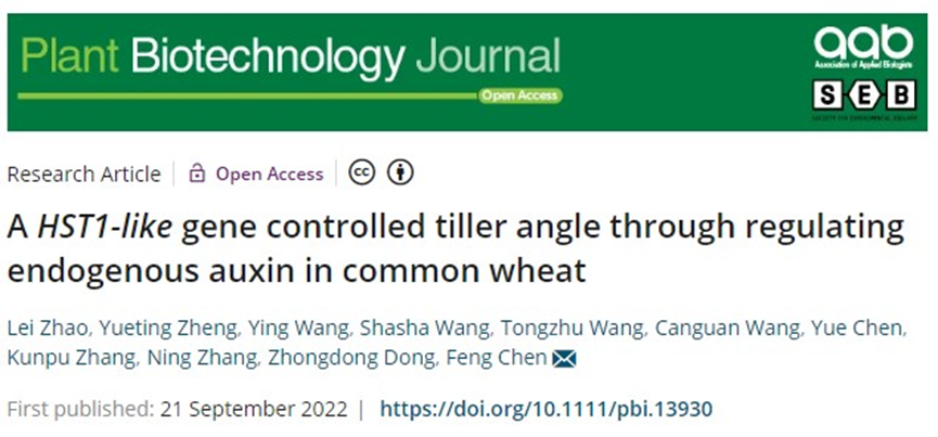 该研究成果以题为“A HST1-like gene controlled tiller angle through regulating endogenous auxin in common wheat”的论文形式在线发表在国际知名学术期刊Plant Biotechnology Journal(IF:13.263),我校丝袜av