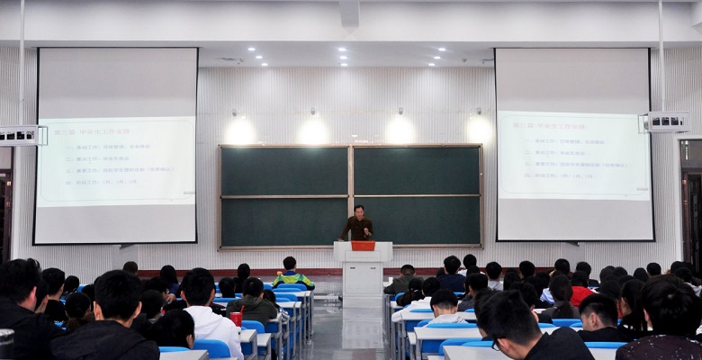 党委副书记吴旭静宣布大会开始后,副院长赵全志向2018届毕业生简述了毕业论文、论文答辩的注意事项以及毕业证书、学位证书的取得方式。他重点提出撰写毕业论文要注意数据的真实性,杜绝抄袭;答辩要充分准备,对论文中的每一处都需要真正理解,提前对可能出现的问题进行准备。团委书记冯晖从“就业程序”、“就业政策”、“毕业生工作安排”及“自传和高校学生登记表填写”四个方面详细介绍。他提到同学们要详细了解国家针对不同地区的就业政策,以便进行职业选择;强调撰写自传时应语言详实,并遵循实事求是的原则。会议结束时,党委副书记吴旭静再次指出了论文撰写和择业就业的注意事项,希望同学们能为自己的大学时光画上圆满的句号。