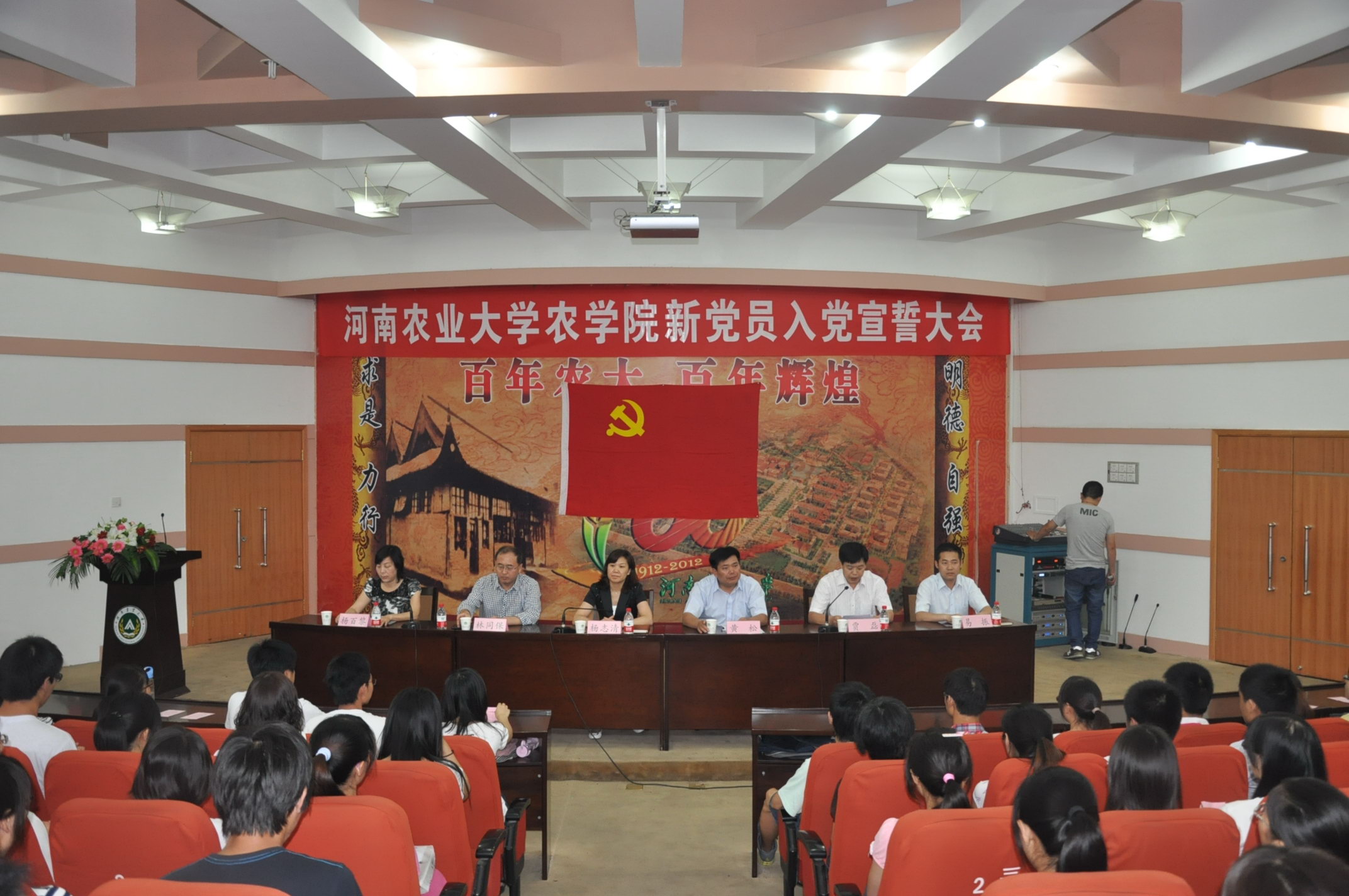 在校三百人报告厅隆重举行新党员宣誓大会。校党委组织部部长杨志清、院党委书记黄松、院长林同保、院党委副书记贾磊、院党委委员、副院长杨百黎、院党委委员、院团委书记易振出席了大会。丝袜av