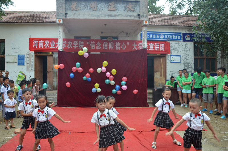 “三信”大学生宣讲团还在这里举办了宣讲活动,大学生们的精彩表演赢得了当地群众的一直好评,现场气氛异常热烈,当地幼儿园小朋友也参与其中,与基层群众共度了一个美好的夜晚。(文/周春涛)