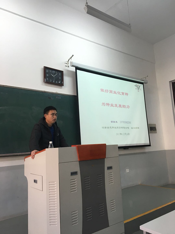 报告会上,胡徐来副总经理深入浅出的阐述了商业化育种的模式以及我国种业发展目前面临的机遇和挑战,同时回顾了自己在农大上学的历史以及毕业后工作成长的历程。育种家韩托全面系统的分享了品种审定的历史、发展及目前的大政方针政策,同时鼓励学生们要珍惜学生时代,珍惜学习的机会,做好应对社会的准备。