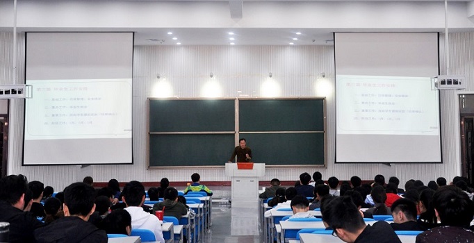 党委副书记吴旭静宣布大会开始后,副院长赵全志向2018届毕业生简述了毕业论文、论文答辩的注意事项以及毕业证书、学位证书的取得方式。他重点提出撰写毕业论文要注意数据的真实性,杜绝抄袭;答辩要充分准备,对论文中的每一处都需要真正理解,提前对可能出现的问题进行准备。团委书记冯晖从“就业程序”、“就业政策”、“毕业生工作安排”及“自传和高校学生登记表填写”四个方面详细介绍;他提到同学们要详细了解国家针对不同地区的就业政策,以便进行职业选择;强调撰写自传时应语言详实,并遵循实事求是的原则。会议结束时,党委副书记吴旭静再次指出了论文撰写和择业就业的注意事项,希望同学们能为自己的大学时光画上圆满的句号。