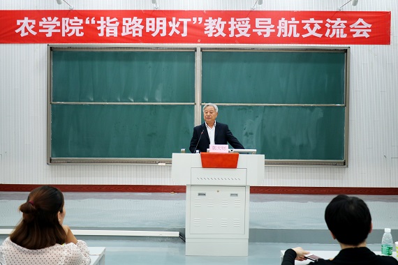 在龙子湖校区教学楼大教室二召开“指路明灯”教授导航交流会。本次交流会的主讲人是由小麦专家郭天财教授。交流会由院党委副书记吴旭静主持,辅导员李盼和学院2018级新生与会。