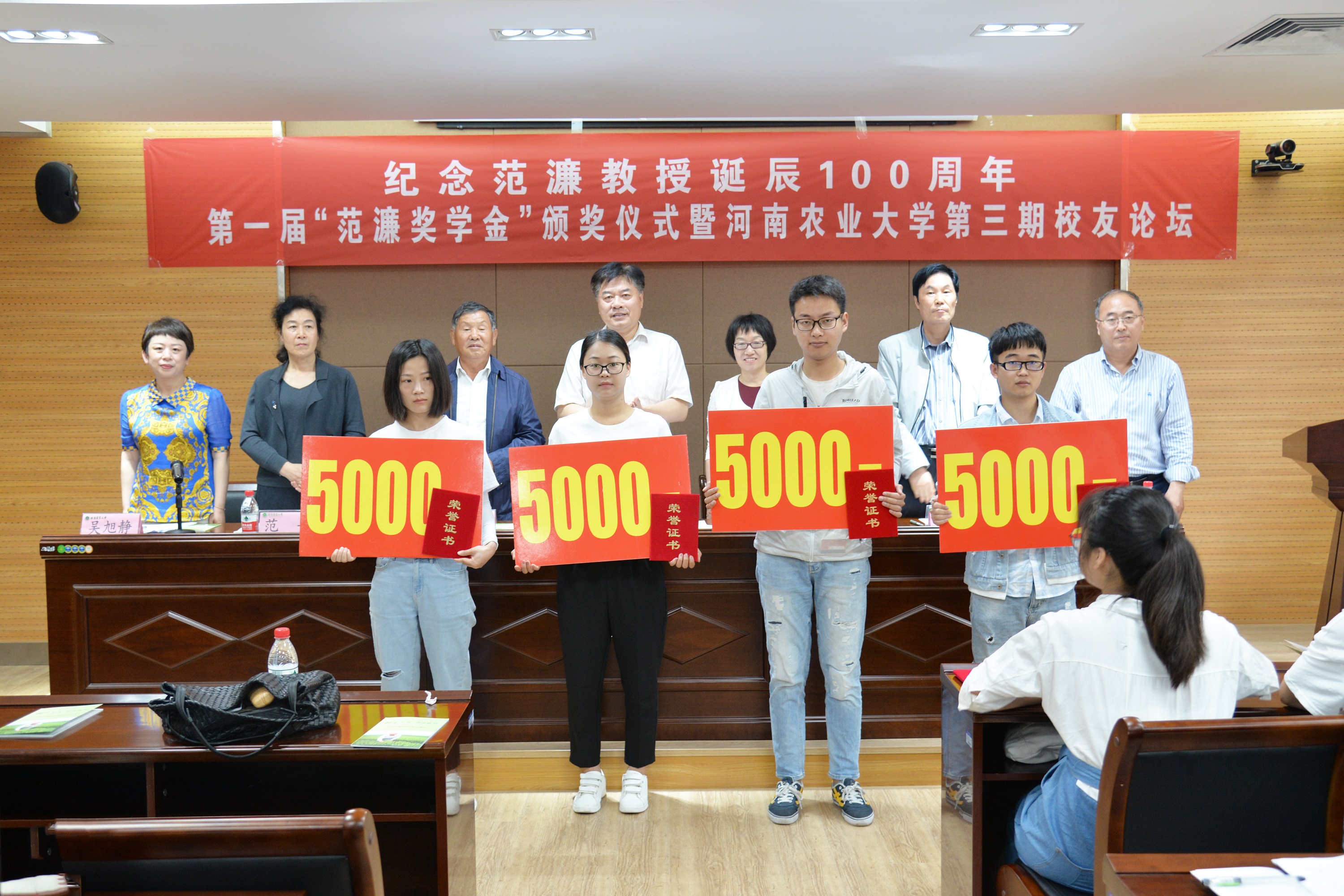 李成吾首先代表学校对范濂教授的亲属和弟子们心系母校、支持母校教育,慷慨助学深的情厚谊表示衷心的感谢,向今天荣归母校的校友们表示热烈的欢迎。同时,向闫昆芳等14名受奖励的同学表示热烈的祝贺,并对在座的同学们提出了四点希望。一是要不忘初心,爱国奉献。希望同学们志存高远,树立远大理想,始终把自己的理想同祖国的前途、把自己的人生同民族的命运紧密联系在一起。把个人梦想融入中华民族伟大复兴的中国梦,争做全面发展的社会主义建设者和接班人;二是要求真务实,励志奋斗。在实现中华民族伟大复兴的征程中,勤奋学习,潜心思考,打牢基础,让知识厚重起来,让本领强起来,真正成为建设国家、建设家乡的栋梁之才;三是要脚踏实地,知行合一。把学到的知识落实到行动上,在创新创业中展现才华、服务社会、收获成功,在新时代干出一番新事业;四是要明德修身,坚守本心。秉承中华民族的优秀传统,明德修身,诚实守信,团结互助,心存感恩,始终保持积极向上的人生态度,在未来的道路上走的更稳更远。