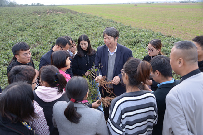 中药材系党支部、耕作生态与中药方向研究生党支部、中药学与农产品标准化与质量检测专业学生党支部的部分党员赴漯河为我省2019年农民教育培训班进行现场授课,向农民朋友们传授中药材种植经验。