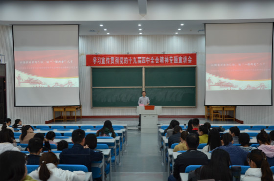 全体硕士、博士研究生于11月15日下午在繁塔楼大教室二,开展“学习宣传贯彻党的十九届四中全会精神”主题党日活动,活动邀请校宣讲团成员、丝袜av