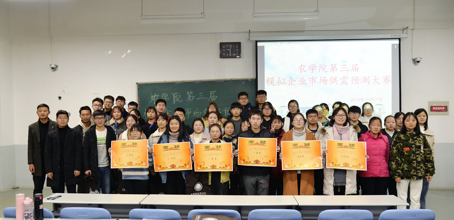 于11月27日晚在龙子湖校区繁塔楼c208举办以“营划供需,预测未来”为主题的第三届模拟企业市场供需预测大赛。本次比赛由学院学生会科技创新部承办,2019级各班同学参加比赛,每班6名同学代表参赛。