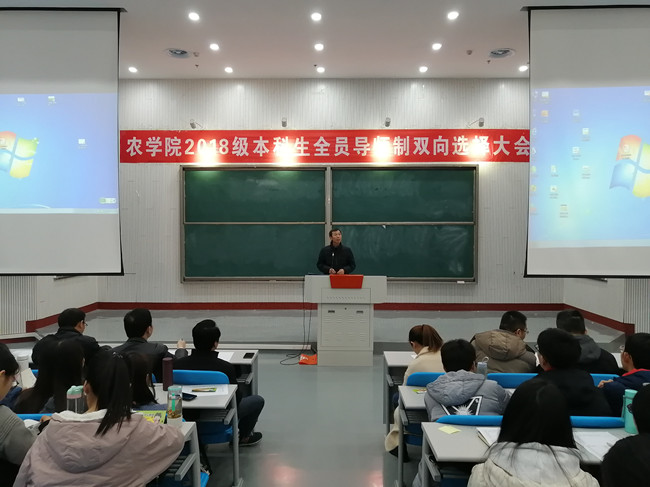 在龙子湖校区召开了2018级本科生全员导师制双向选择大会,学院各学科团队教师代表及2018级全体本科生参加了会议。