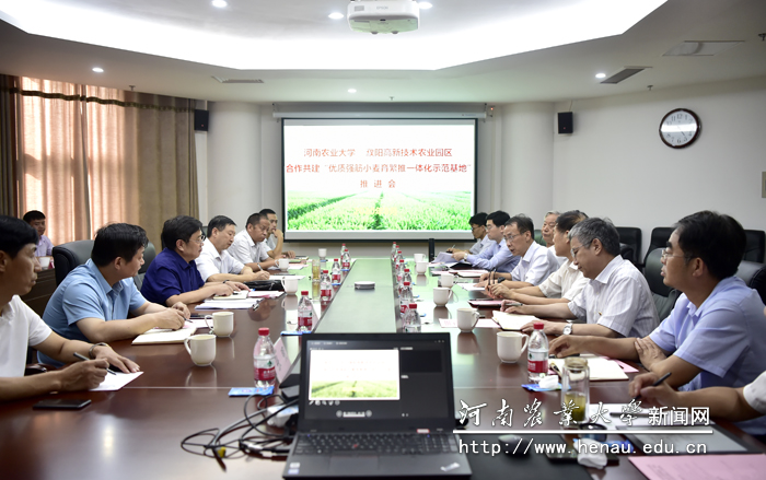 8月13日下午,我校与濮阳经济技术开发区农业园区合作共建“优质强筋小麦育繁推一体化示范基地”推进会在丝袜av