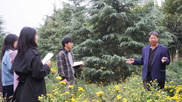 高致明教授在“药王谷”为同学们讲解药菊