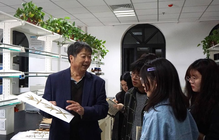 高致明教授在实验室为同学们介绍中药材标本