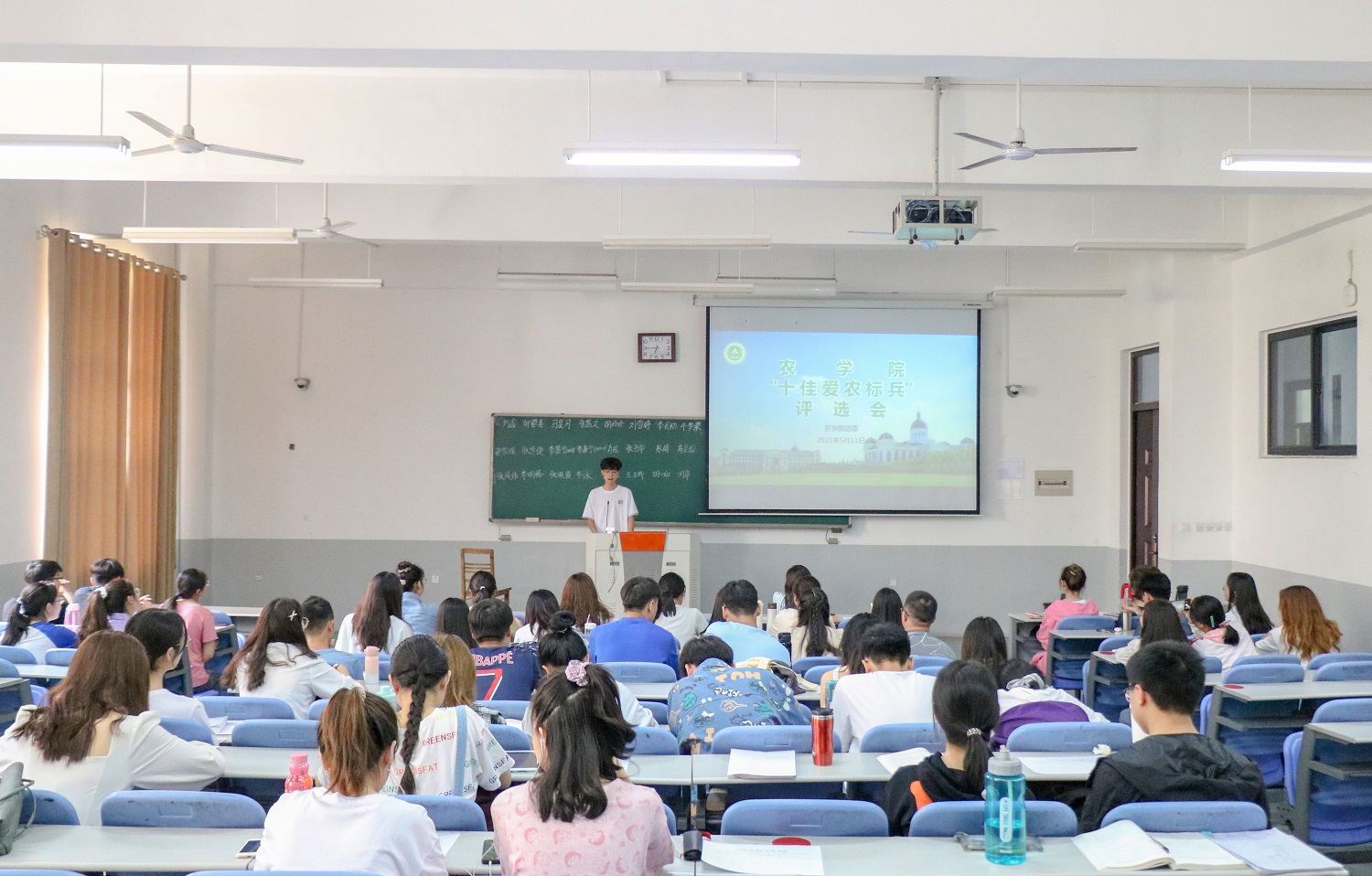 在龙子湖校区举办了2020-2021学年“十佳爱农标兵”评选会。2018级和2019级共24位候选人参加评选,院团委老师李玥瑞、白杨参加并指导了本次评选会。