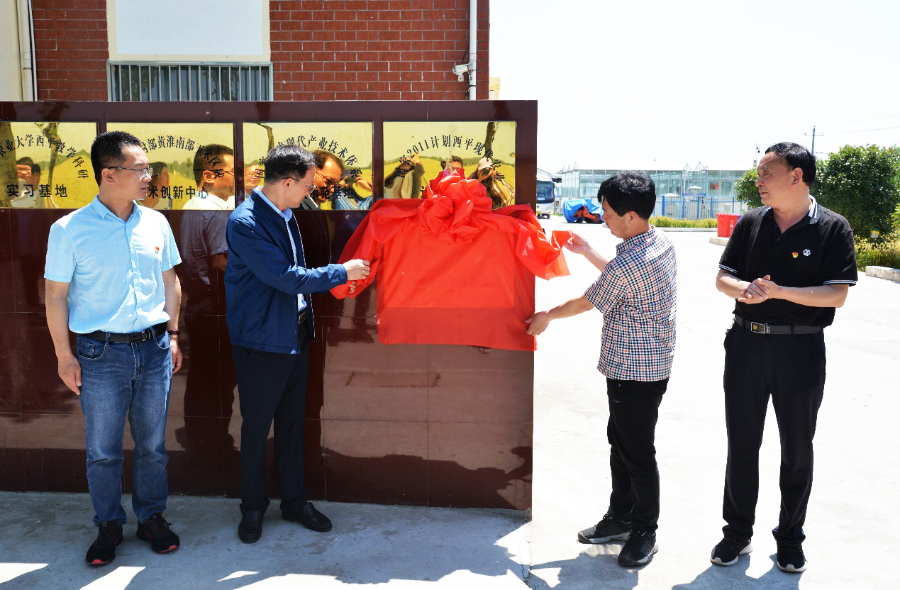 校组织部副部长冯晖和西平县农业局副局长郭国选共同为实践教育基地揭牌
