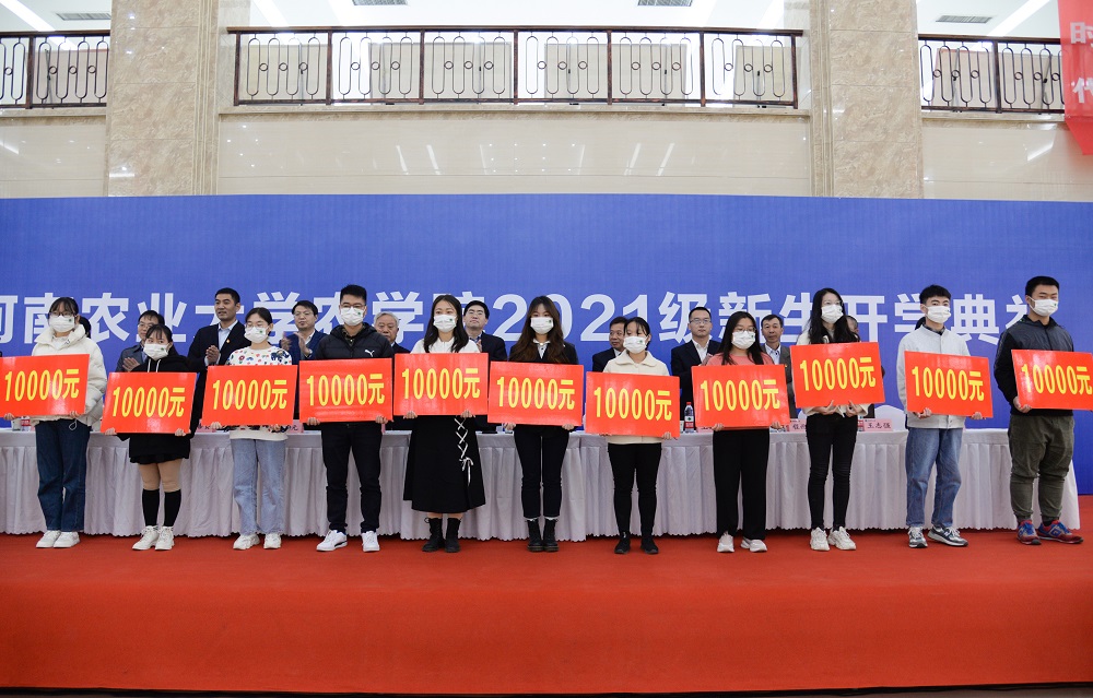 与会领导老师分别为11名研究生和10名本科生颁发了新生入学奖学金,每人奖金一万元。