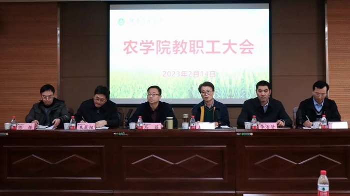 最后,马菲作总结讲话。为进一步做好2023年重点工作,他提出了以下四点要求。一是培养责任感。要严守底线,高度重视学生安全、师德师风、意识形态及安全稳定,授课育人要力争一流,为创建中国特色世界一流农业大学贡献力量。二是增加危机感。要以高度的思想自觉和行动自觉加快作物学一流学科创建工作,以强农兴农为己任,全面提高人才培养质量。三是强化归属感。要加强师生之间的交流,构建更加温暖更有凝聚力的师生关系,引导教师爱岗、爱生、爱科研,学生爱校、爱师、爱专业。四是提升幸福感。要进一步优化学院干事创业环境,提升教职工的工作幸福感,激发教职工工作热情和活力。