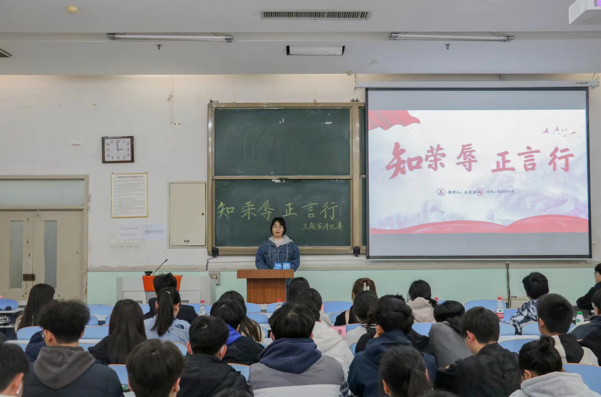 比赛现场,参赛选手围绕“知荣辱,正言行”的主题进行深刻剖析,巧用身边典型人物事迹抒发感悟,以生动的语言、鲜活的事例、真挚的情感,讲述着作为大学生的我们应该在生活中规范自己的言行的决心,充分展现新时代青年砥砺奋进的形象和风采,赢得现场评委和观赛同学的阵阵掌声。