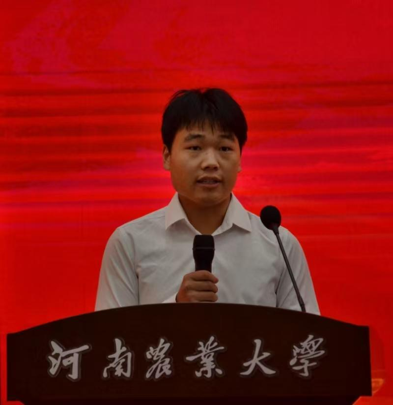 2023级冯健超同学作为博士研究生代表发言。他提倡秉承“明德自强,求是力行”的校训,追求学术卓越,积极参与科研,以实际行动支持中国农业的现代化。他还鼓励大家锤炼品德,练就本领,不忘初心,勇担使命,共同在农学领域探索真理、勇攀高峰。